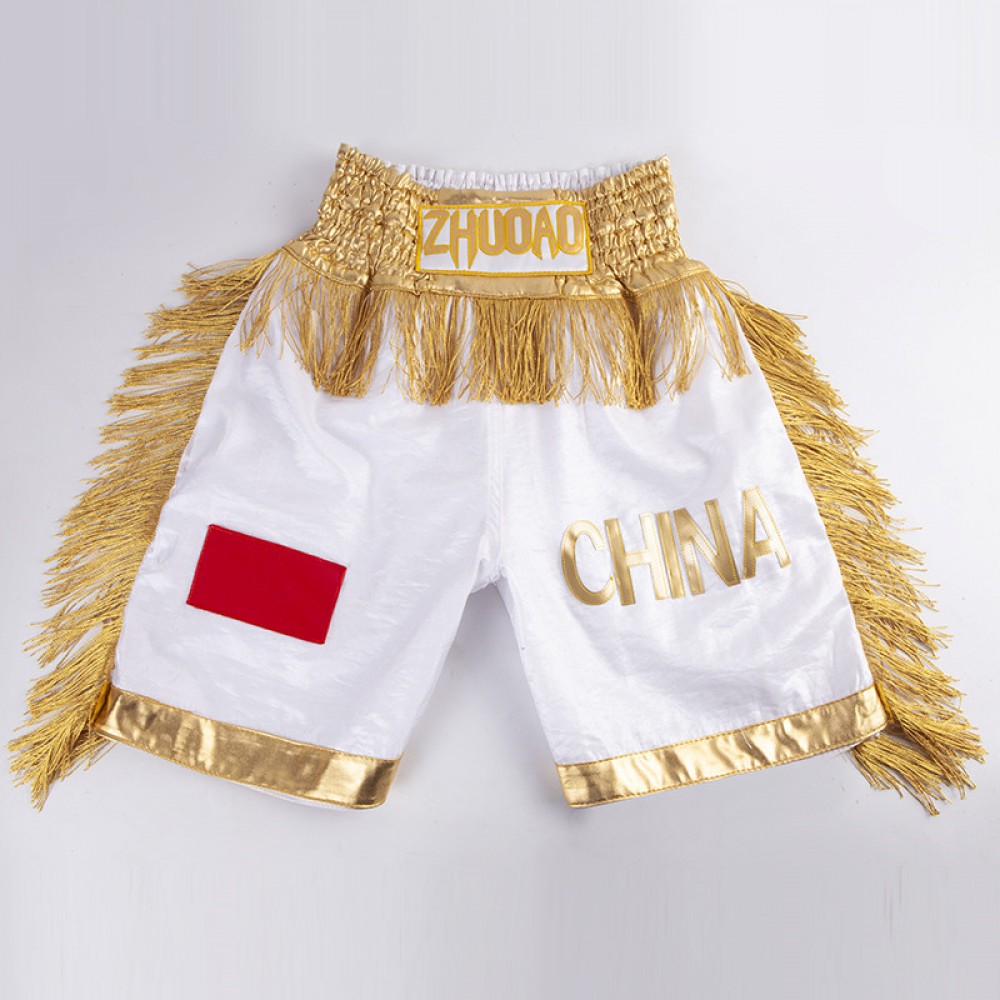 Boxing Shorts Women Men Kids Gold Tassels Muay Thai Shorts Custom Name/Logo Fitness Sanda MMA Competition Game Training Pants