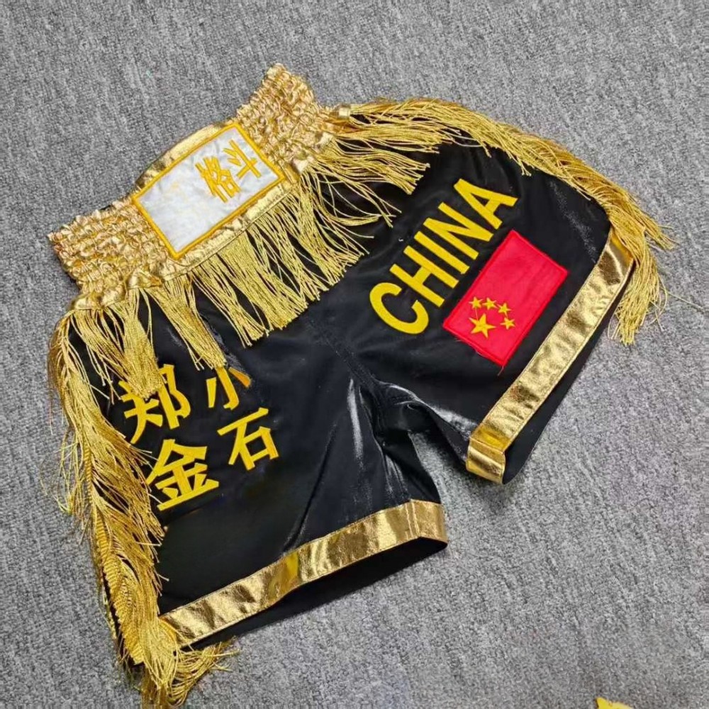 Customized Professional Muay Thai MMA Kickboxing & Sanda Fight Shorts for Men and Women Featuring Flag and Personalized Name Design