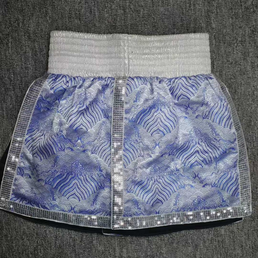 Blue Ocean Dolphin Print Muay Thai Shorts Silver Trim Kickboxing MMA Martial Arts Trunks
