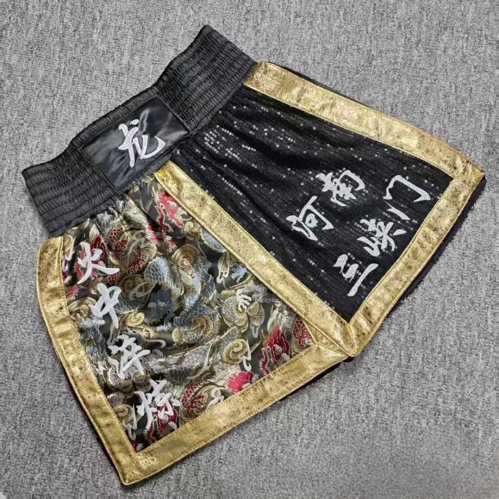 | Name | Black & Gold Dragon Brocade Muay Thai Shorts |