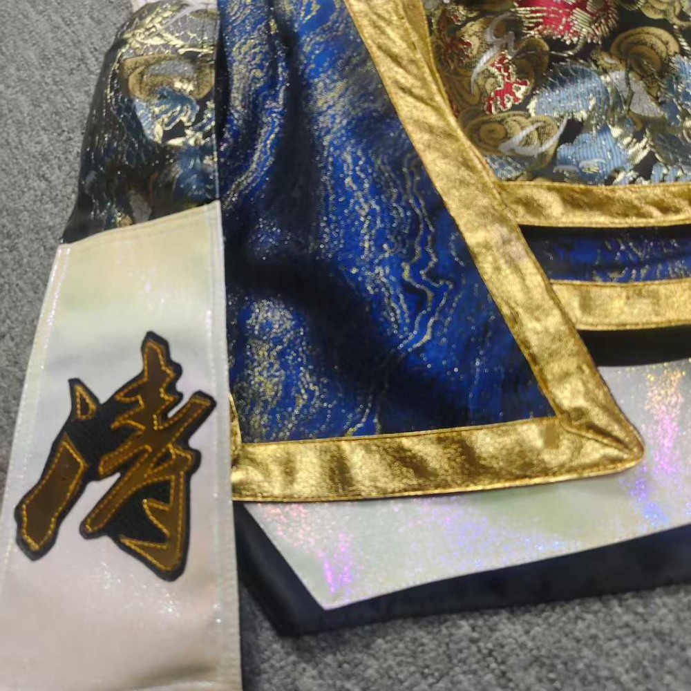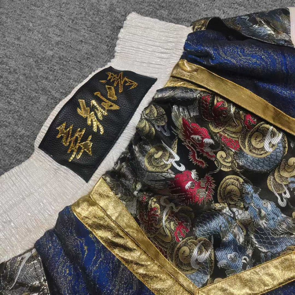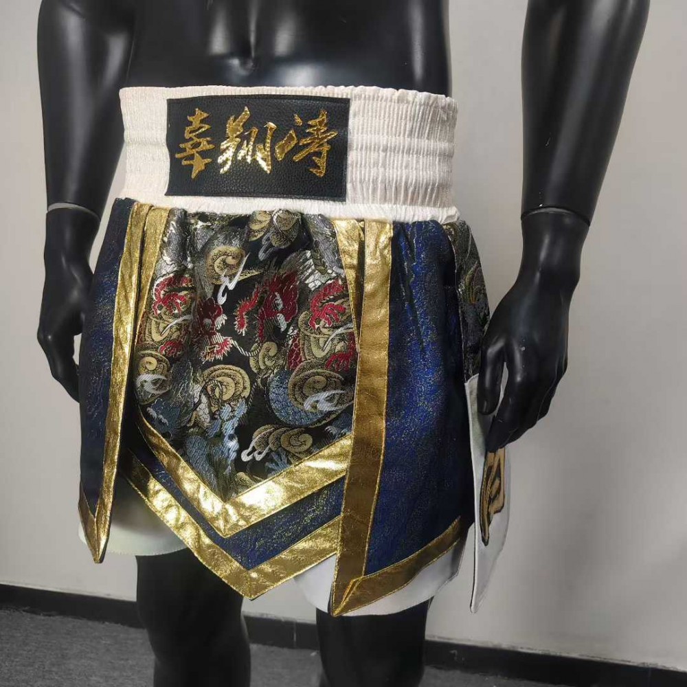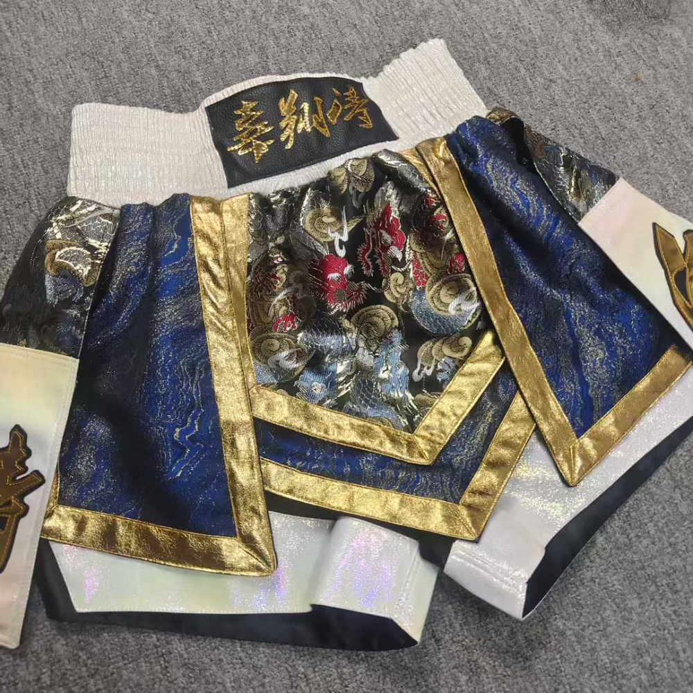 Blue & Gold Brocade Boxing Shorts Fight Trunks