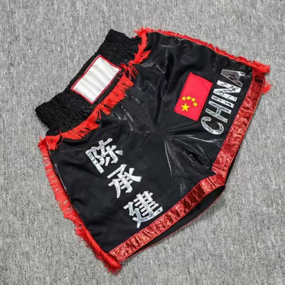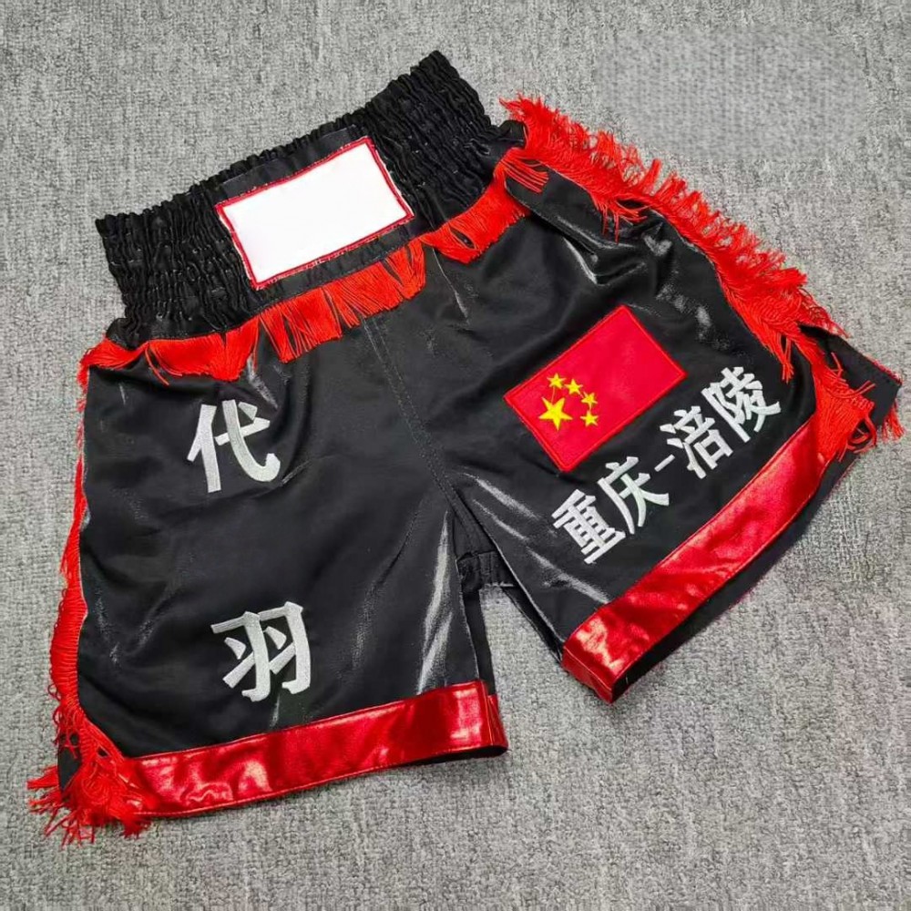 Black & Red Muay Thai Boxing Shorts with Red Tassels Fight Gear for Boxing/Kickboxing Competition & Training