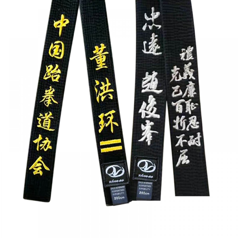 Embroidered Custom Martial Arts Karate Taekwondo Judo Double Wrap Solid BLACK Belts